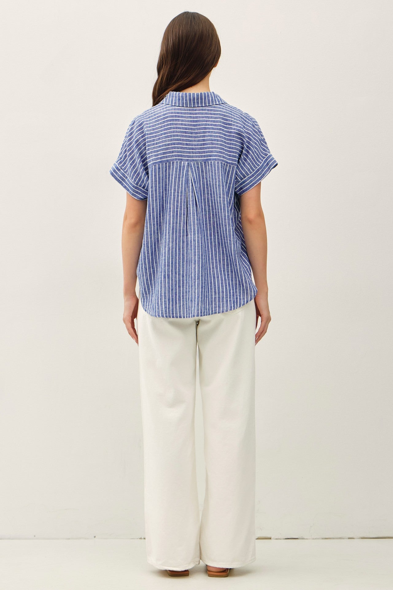 A lightweight striped button-down that continues to be a customer favorite. The relaxed silhouette and short sleeves give it an effortless feel, while the classic stripe keeps the look polished.