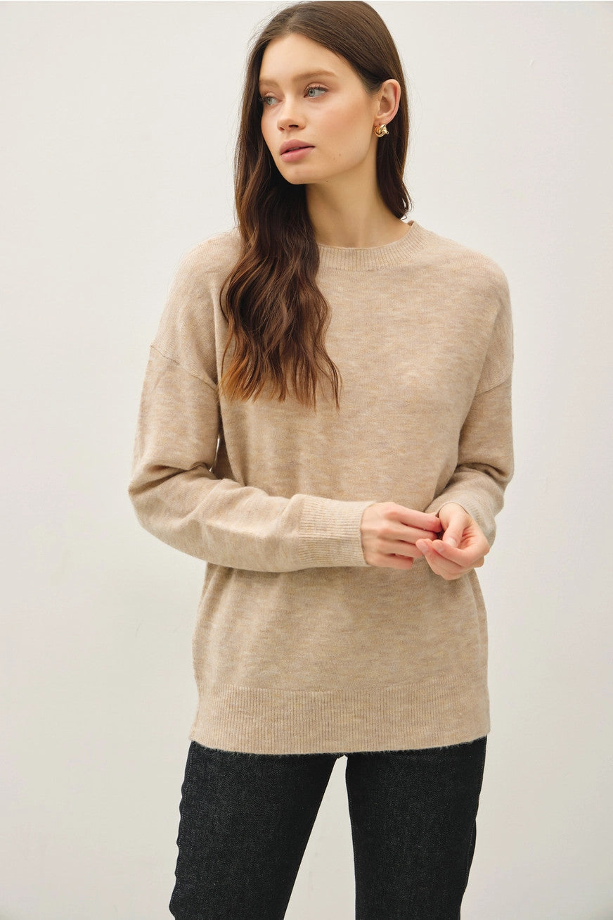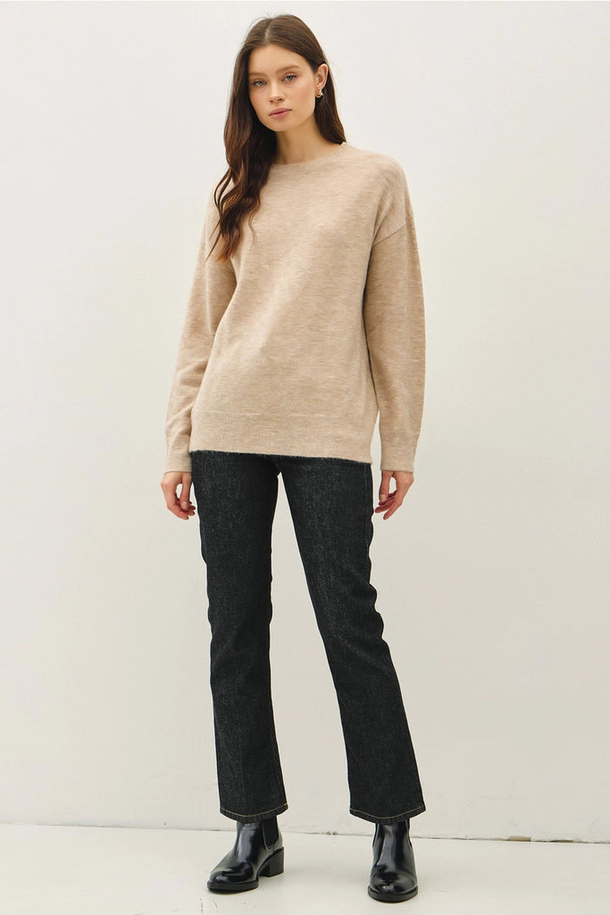 An essential knit with elevated simplicity. The Margot Wool-Blend Pullover is crafted from a soft, lightweight blend that offers warmth without bulk. Designed with a relaxed silhouette, drop shoulders, and refined rib trim, it layers effortlessly over denim, trousers, or skirts. The perfect mid-weight knit for everyday ease—polished enough for the office, cozy enough for weekends.