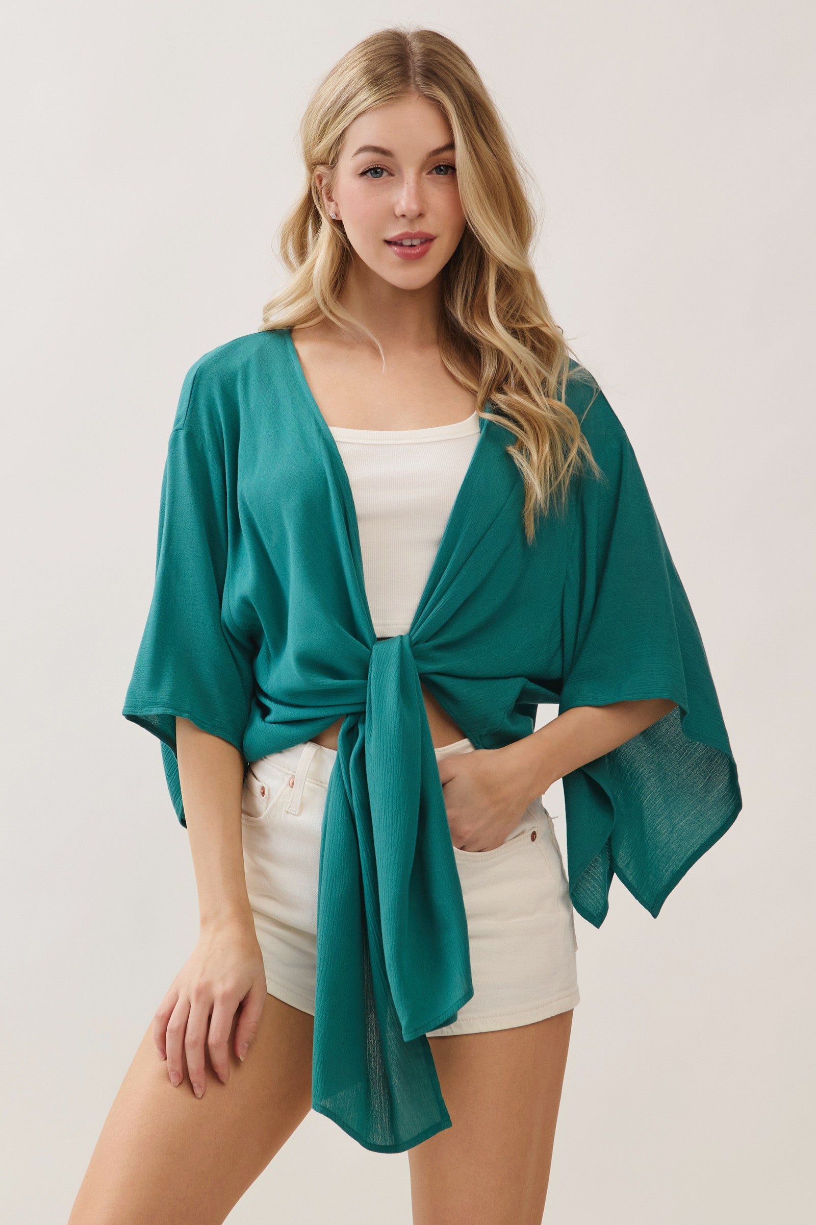 This three-quarter sleeve kimono cardigan adds an effortless layer with its relaxed fit and flowing silhouette. Lightweight and easy.