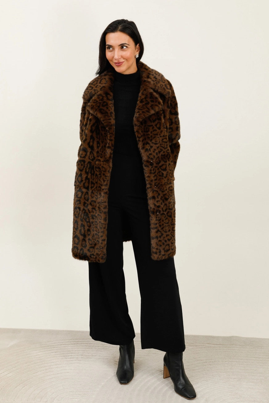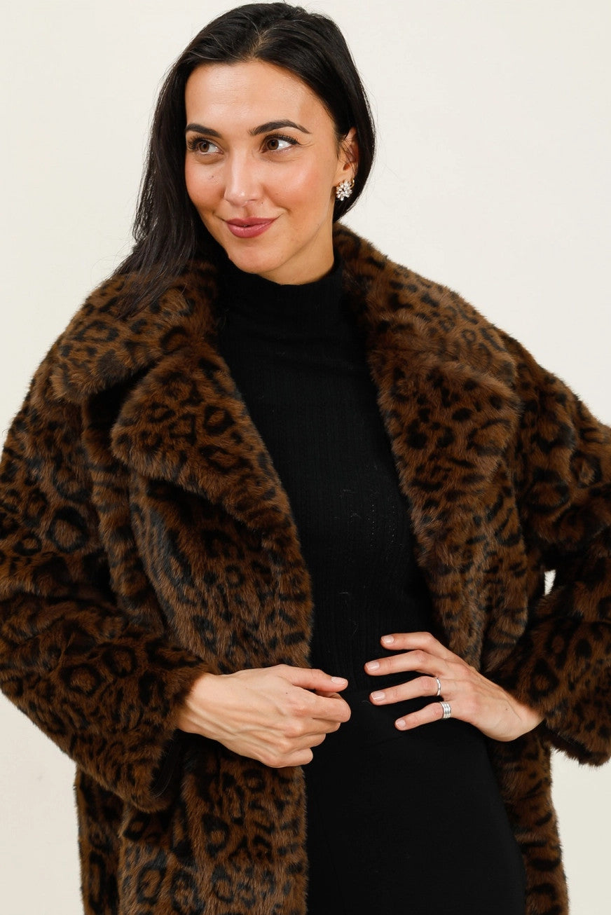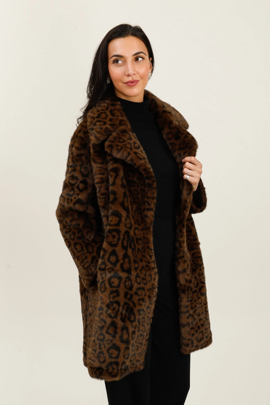 A nod to old European glamour with modern ease. Soft faux fur in a classic leopard pattern, cut with room to move.
