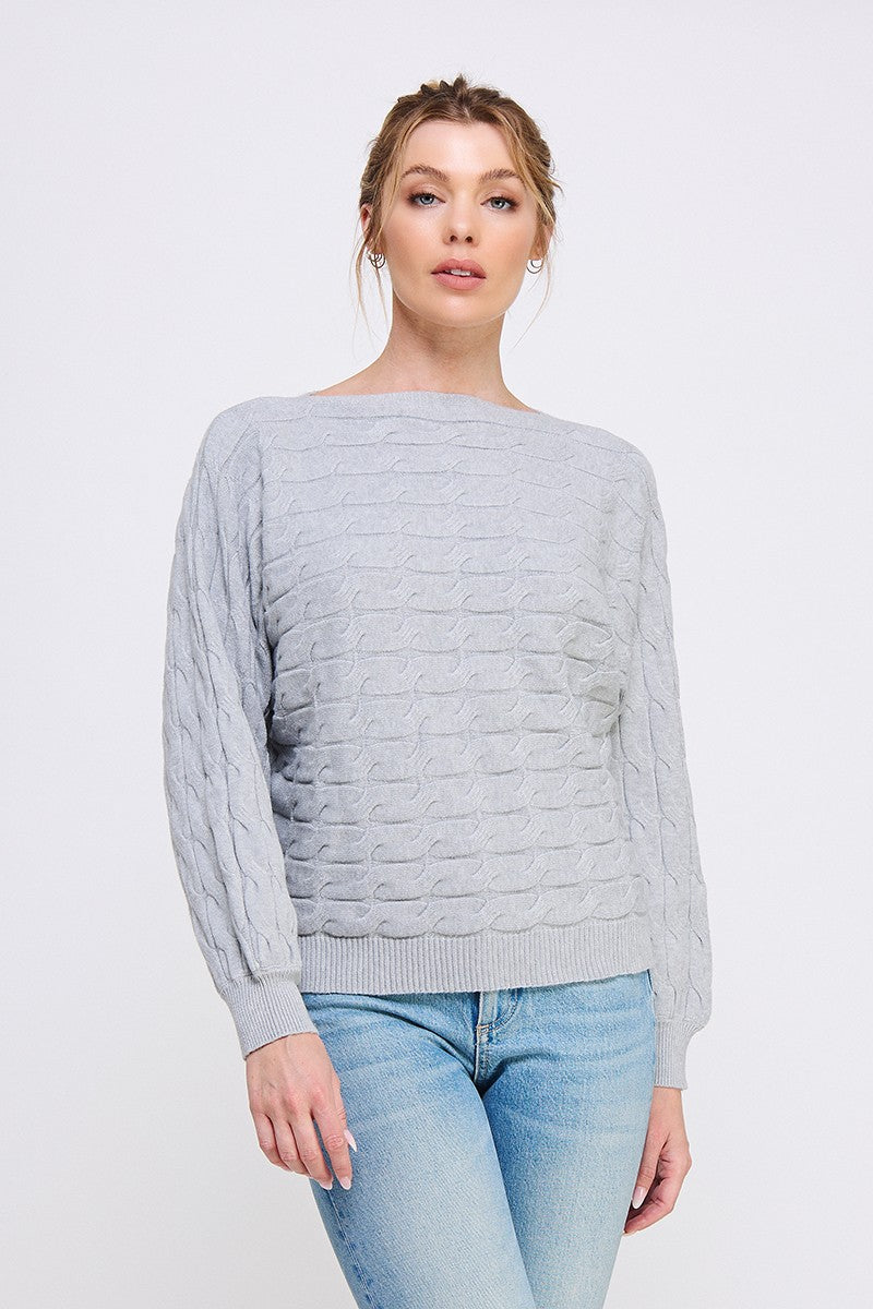 Description: Soft Long Sleeve Dolman Fine Gauge in Horizontal Cable Knit Pattern