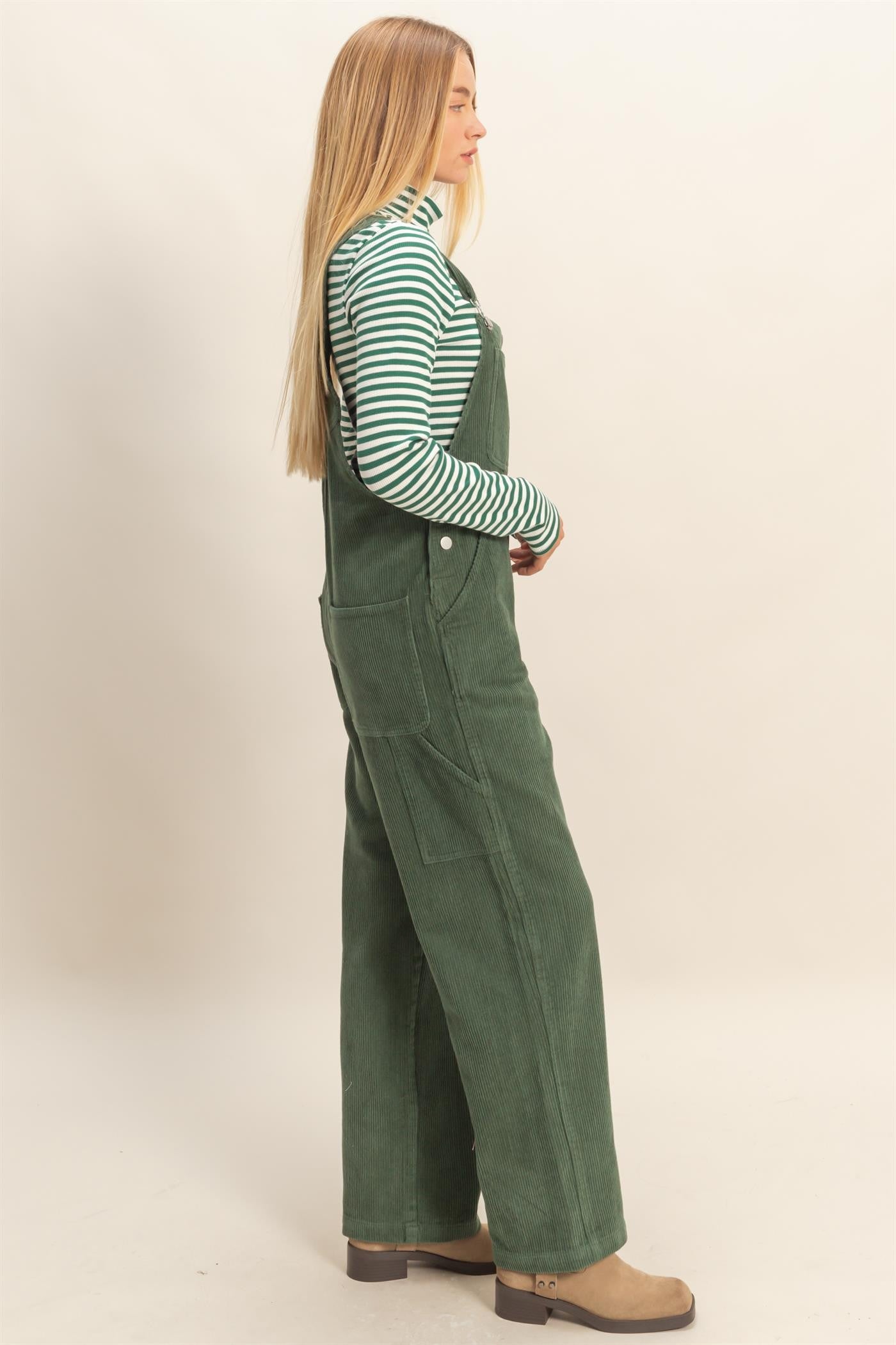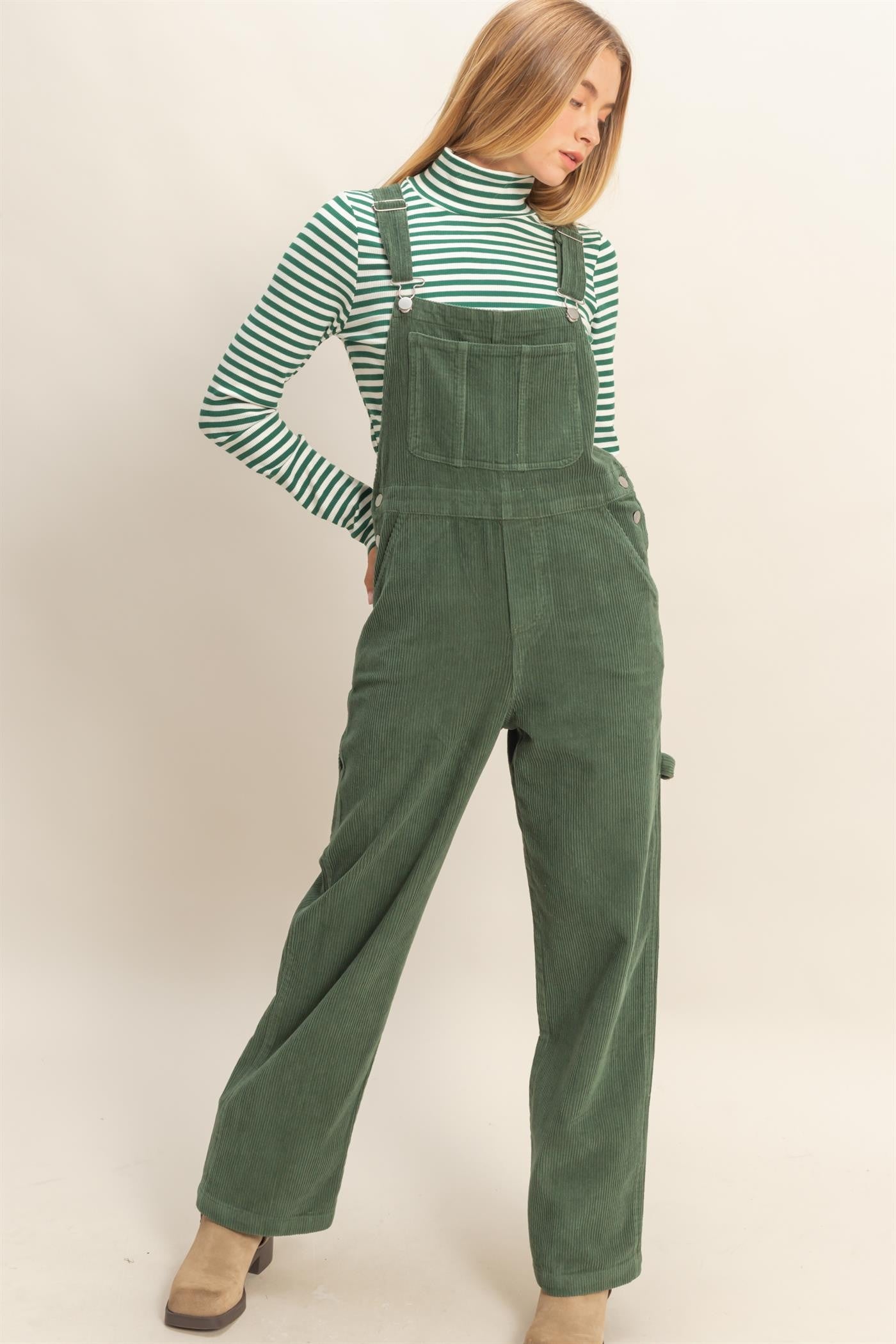 Classic workwear meets modern ease in these straight-leg corduroy overalls. With a timeless bib front, adjustable straps, and roomy pockets, they’re the perfect blend of nostalgic charm and laid-back style. Pair them with a striped tee or a cozy knit for an effortlessly cool, all-season look.