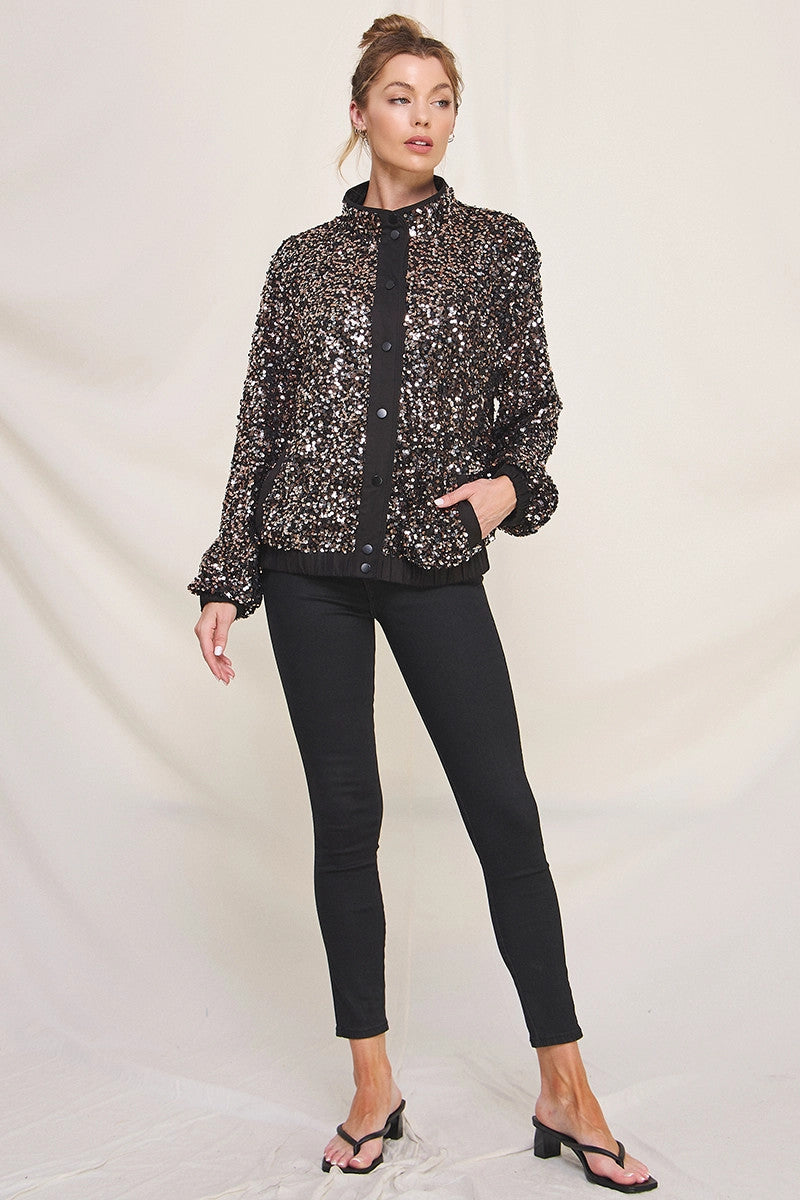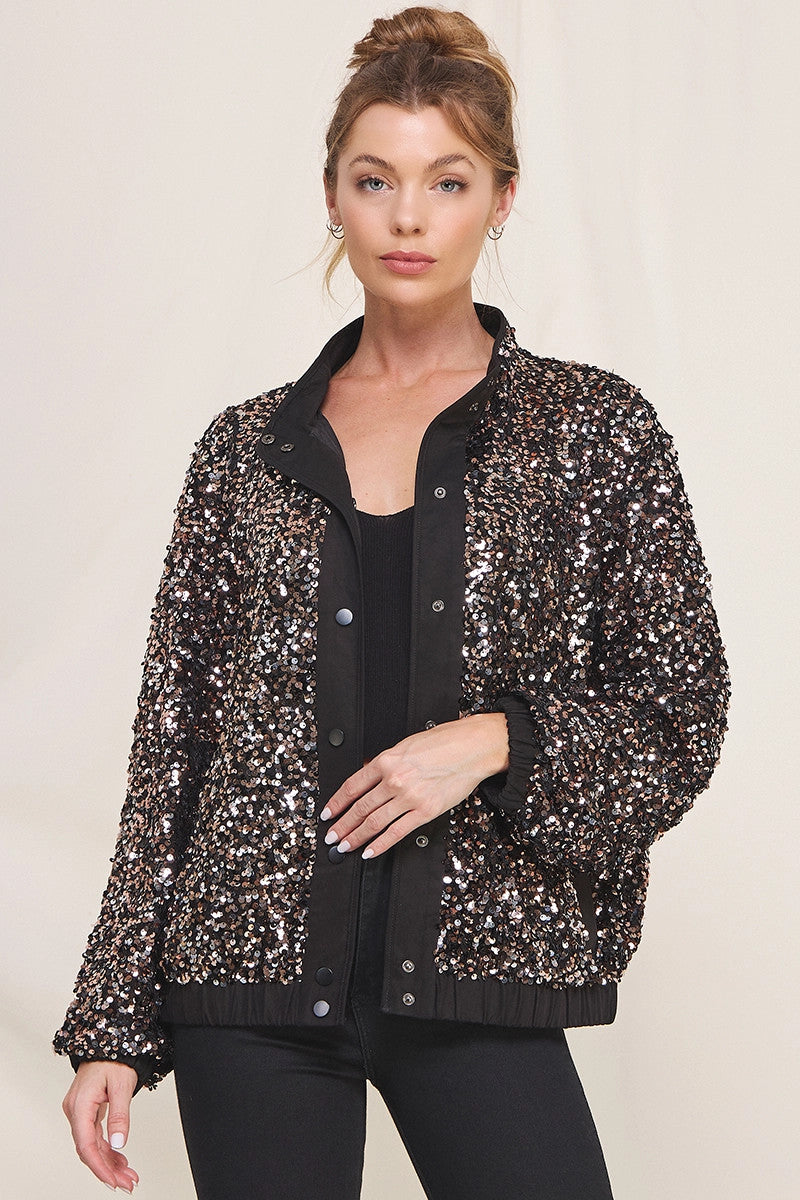 Designed for nights that linger, the Encor Jacket brings subtle drama with an easy, modern fit. Allover sequins add depth and shine, while the streamlined silhouette keeps it wearable. Throw it on and let the rest be simple.