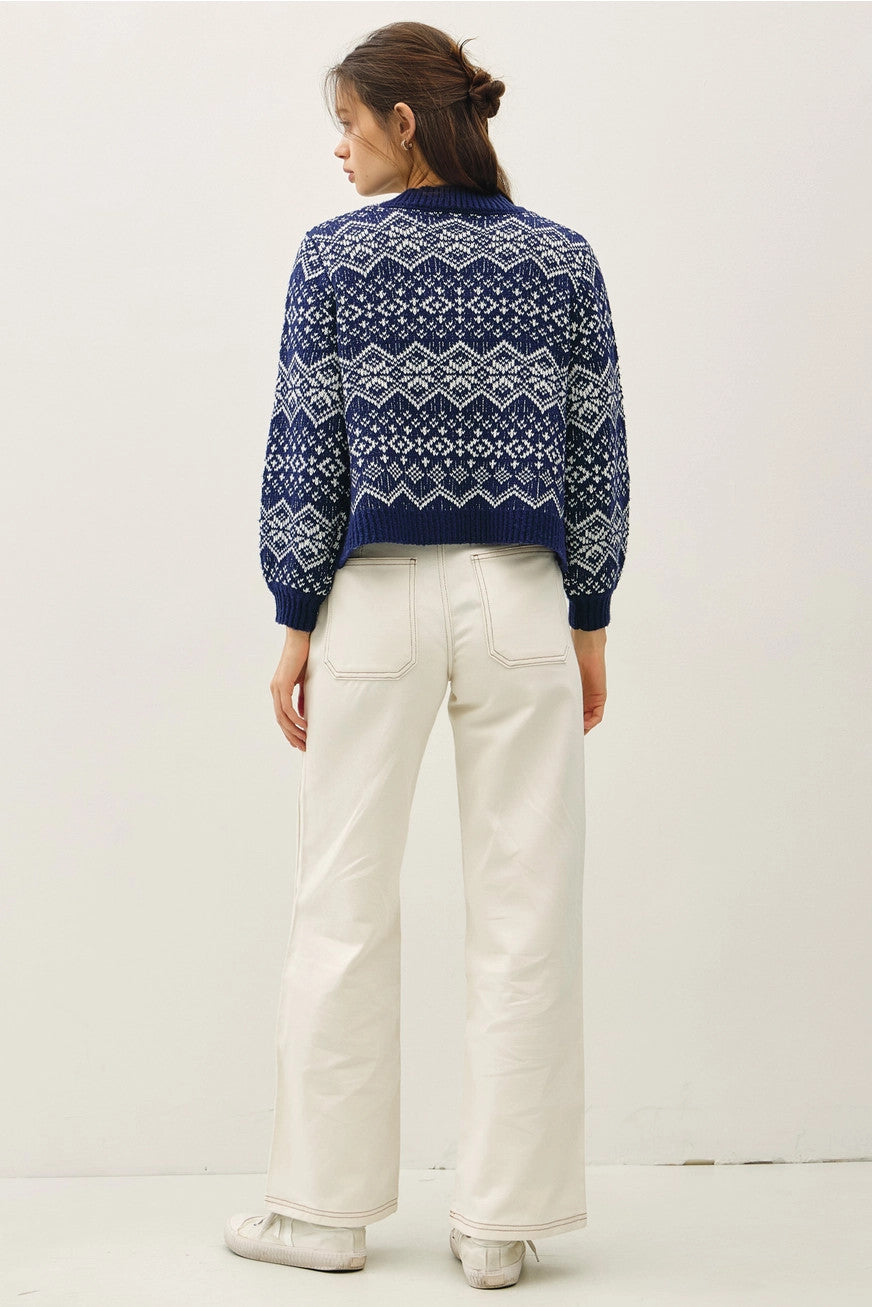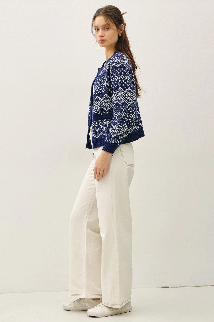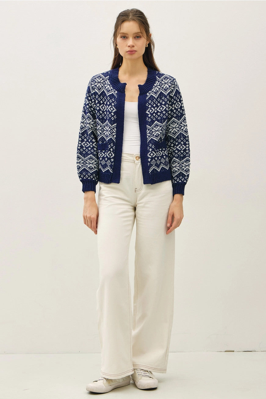 The Nordic inspired Fair Isle cardigan is this seasons favorite pattern. Inspiring strolls on clear cold days or in sprinkled snow, grab a hot chocolate and cozy up.